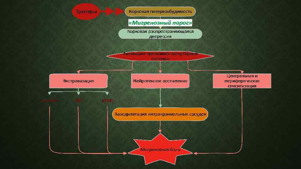 Физические факторы • Физическая нагрузка • Недостаток сна • Избыток сна • Секс Факторы окражующей среды • Яркий свет • Духота • Метеофакторы Гормональные изменения • Менструация • Беременность • Прием контрацептивов Эмоциональные факторы • Стресс • Тревога Мигрень Пищевые факторы • Голод • Алкоголь (красное вино) • Крепкий кофечай • Шоколад