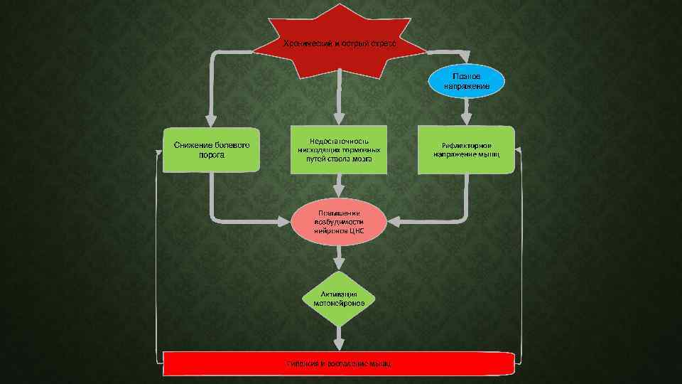 ЭТИОЛОГИЯ И ПАТОГЕНЕЗ Уменьшение активных движений головой Дисфункция перекраниальных мышц Поведение пациента, направленное на снижение боли Боль и напряжение мышц головы и шеи ГБН