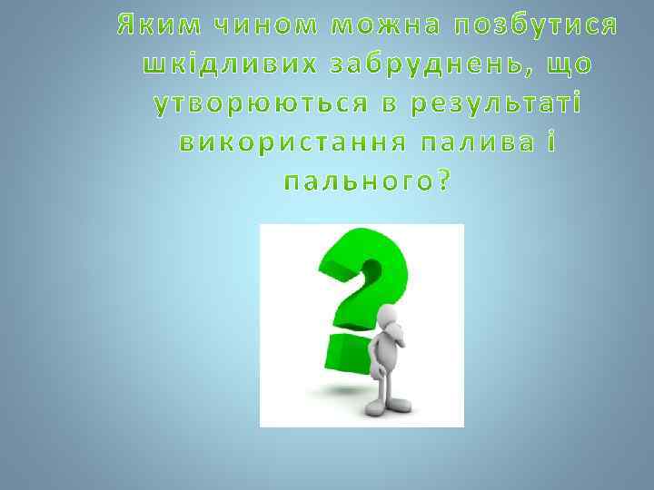 ЖИТТЯ ЛЮДИНИ ПОВСЯКДЕННО ПОВ’ЯЗАНЕ ЗІ СПАЛЮВАННЯМ ГОРЮЧИХ РЕЧОВИН У ПОБУТІ, НА ТРАНСПОРТІ, У ПРОМИСЛОВОСТІ. КРІМ КОРИСТІ ЗАСТОСУВАННЯ НАФТОПРОДУКТІВ, ВУГІЛЛЯ І ПРИРОДНОГО ГАЗУ СТВОРЮЄ РЯД ПРОБЛЕМ, НЕГАТИВНИХ ДЛЯ РОЗВИТКУ ЦИВІЛІЗАЦІЇ ТА ЗАГАЛОМ ДЛЯ ВИЖИВАННЯ ЛЮДСТВА.