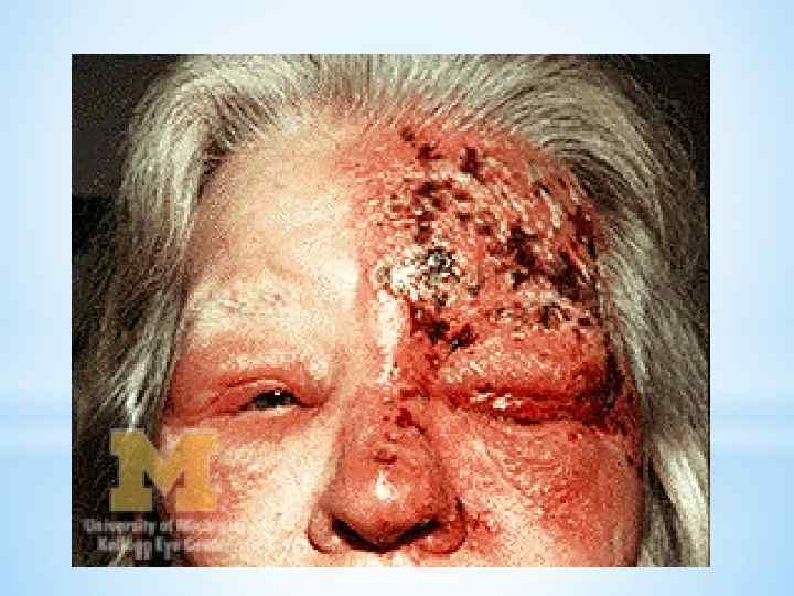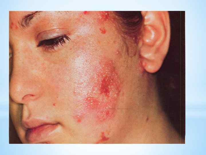 Ганглионит Гассерова узла n Общеинфекционные проявления (часто) n Интенсивные, жгучие боли, больные лишаются сна в зоне последующей локализации сыпи (лоб, волосистая часть головы, др. n Герпетические высыпания