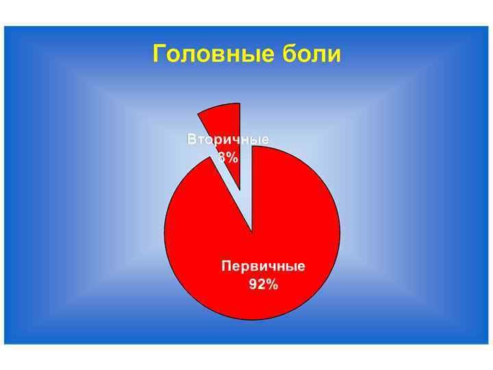 Наиболее частые первичные головные боли n n n Мигрень (5 -15%) Головная боль напряжения (45 -84%) Пучковая головная боль (0, 1 -0, 4%) Хроническая пароксизмальная гемикрания Другие