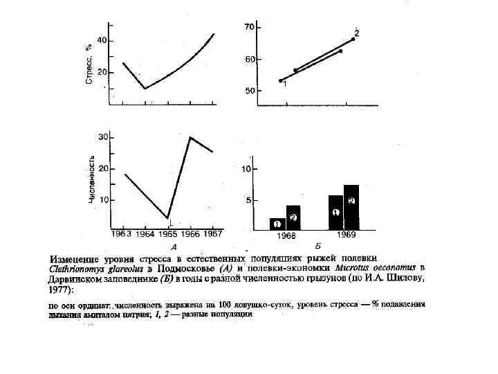 • Селье показал, что стресс ингибирует репродуктивные функции • Затем это подтвердили Крисчиан и Дэвис (1966) на пенсильванской полевке. Они показали, что есть корреляция изменений численности и относительной массы надпочечников.