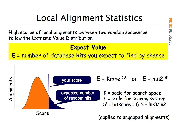 При поиске близких последовательностей важна статистика • • Различие между настоящим совпадением и артефактом делается с помощью оценок вероятности, что совпадение могло быть случайным. Мы обсудим значение весов (scores, S) и ожиданий (e-values, E), которые ассоциируются с выравниваниями, отобранными BLAST. 24