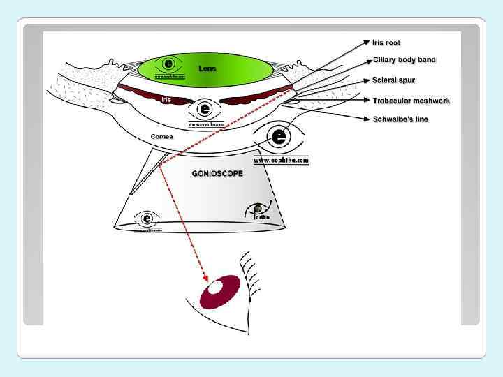 Уточняющая (непрямая) гониоскопия. Ход лучей при непрямой гониоскопии.