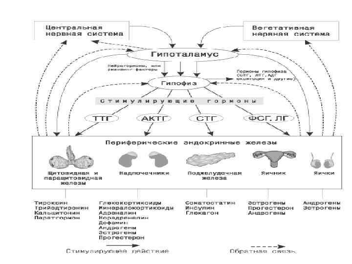 Роль гормонів у регуляції обміну речовин До залоз внутрішньої секреції відносяться: 1. гіпоталамус, 2. гіпофіз, 3. щитовидна, 4. білящитовидна, 5. вилочкова залози, 6. надниркові залози, 7. підшлункова і статеві залози.