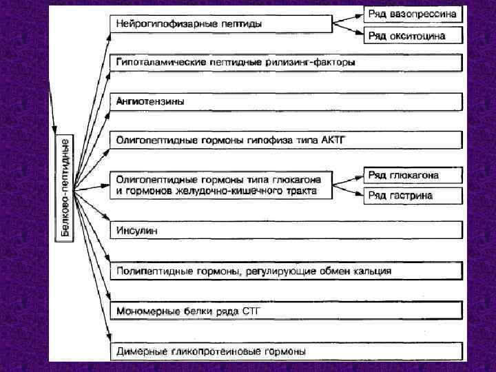 Гормоны гипоталамуса являются относительно простыми по структуре олигопептидами. К ним относятся: кортиколиберин, тиролиберин, люлилиберин, фоллиберин, соматостатин, пролакстатин, пролактолиберин, меланолиберин, меланостатин. 18