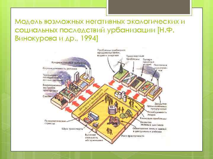 Модель возможных негативных экологических и социальных последствий урбанизации [Н. Ф. Винокурова и др. , 1994]