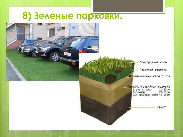 8) Зеленые парковки.