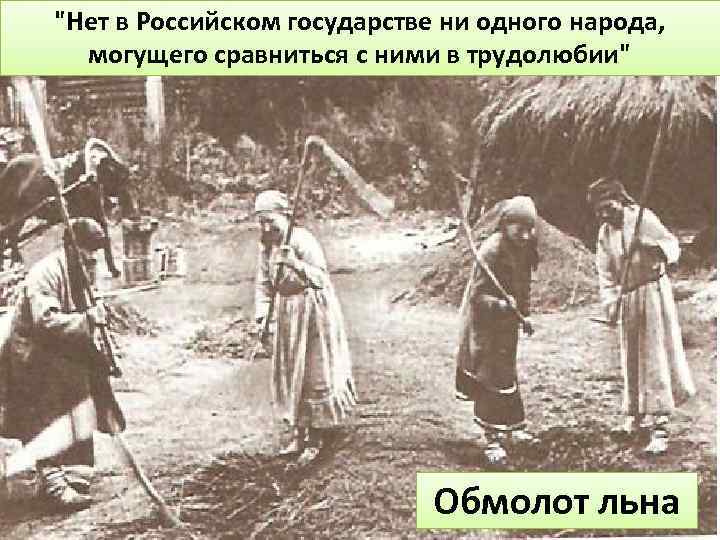 "Нет в Российском государстве ни одного народа, могущего сравниться с ними в трудолюбии" Обмолот льна