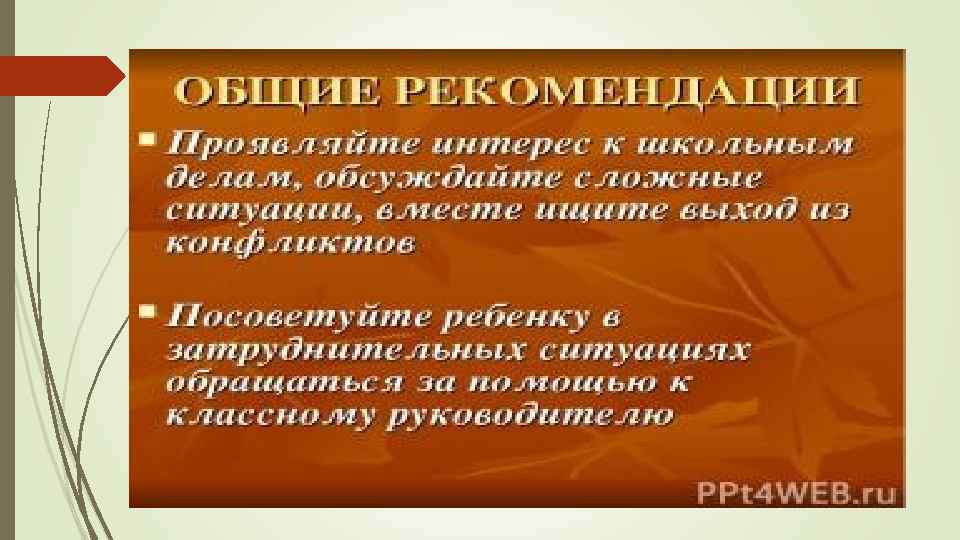 Необходимо организовать жизнь подростка так, чтобы он чувствовал себя достойным человеком, имел возможность самовыражения, высказывания собственного мнения без риск получить в ответ от взрослого пренебрежения или оскорбление. Ø Кто то начинает употреблять наркотики «от нечего делать» , а кто тог от желания расслабиться от чрезмерных нагрузок. Необходимо обеспечить оптимальную нагрузку подростков. Для очень многих детей необходим индивидуальный подход к учебной нагрузки и выбору увлечений. Ø Часто дети и подростки «уходят в наркотики» от семейных и личных проблем, заброшенности или, наоборот, от гиперопеки. Если вы думаете, что ваши семейные отношения, конфликты друг с другом не влияют на состояние подростка, Вы скорее всего ошибаетесь. Ø Некоторые подростки начинают принимать наркотики подражая родителям и старшим.