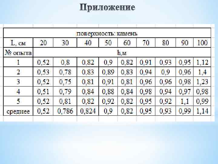 Ход работы Закрепляем мерную ленту до уровня 2 – 3 метров. Конструкцию из теннисных шаров изначально размещаем на высоте относительно пола , а затем отпускаем и наблюдаем за полетом шарика для настольного тенниса. Повторяем опыт несколько раз, при этом увеличивая h на 10 см и на разных поверхностях.