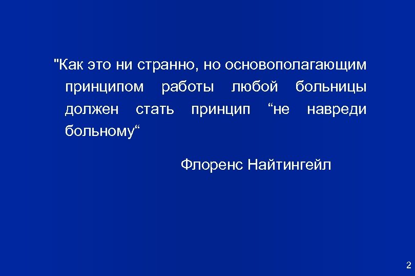 "Как это ни странно, но основополагающим принципом работы любой больницы должен стать принцип “не навреди больному“ Флоренс Найтингейл 2