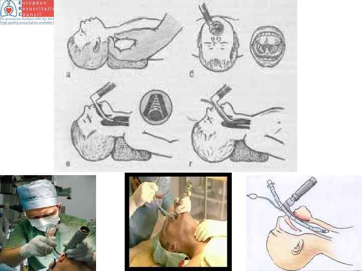 Госпитальная СЛР лечение недостаточности дыхания и кровообращения Интубация трахеи - наиболее безопасный и эффективный способ обеспечения проходимости дыхательных путей, профилактики раздувания желудка, оптимального контроля давления в дыхательных путях и создания положительного давления в конце выдоха (ПДКВ). Во время реанимации предпочтителен оральный путь. При сохраненном сознании используют анестетики, седатики, миорелаксанты для благоприятной интубации, избежание повторных попыток интубации. Ребенку с остановкой сердца/дыхания и глубокой комой Не нужны седация и анальгезия; во всех остальных случаях должны предшествовать преоксигенация мешком-маской, быстрая седация, анальгезия и миоплегия. Прижатие перстневидного хряща не следует применять при осложненной оксигенации и интубации, может сместить дыхательные пути.