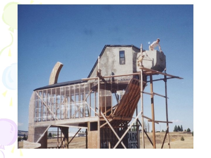 • В это время у них возникла идея создания отеля возле их мастерской, форму отеля они не стали делать обычной, как и все остальные отели, а решили, что если он будет в каком-то необычном образе, например, в форме собаки, то он привлечет больше желающих в нем пожить. Отель по расчетам должен был быть закончен через 10 лет, но к счастью завершили его намного раньше. Хотя над интерьером еще продолжаются работы.