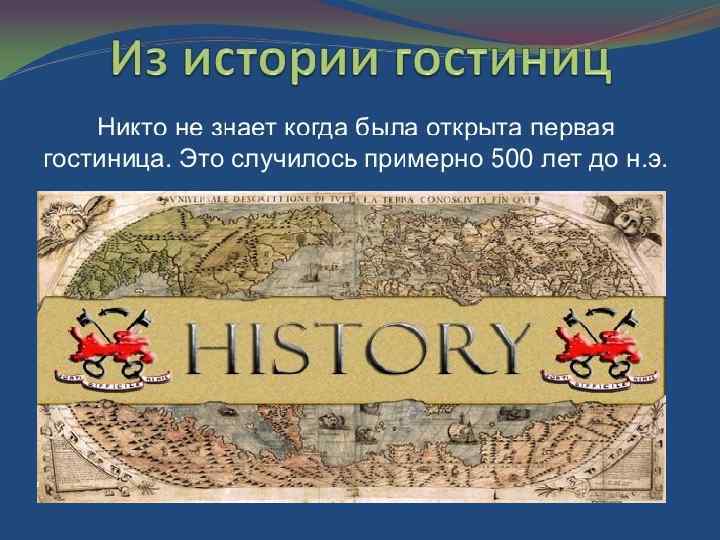 История развития гостиничного дела неразрывно связана с путешествиями. Путешествуя с разной целью и намерениями (посещение святых мест и храмов, олимпийских игр и т. п. ) люди нуждались в приюте, питании и отдыхе. Древнейшие упоминания о местах для размещения путешественников можно найти в письменных источниках Древнего Египта.