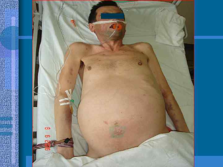 Клінічна картина ГДН (варіант: гіпоксемія+гіперкапнія) Стадія ІІ. • Хворі збуджені, інколи безпричинно веселі, неадекватно оцінюють свій стан. • Шкірні покриви багрово-синюшні. Рясне потіння, гіперсалівація, бронхіальна гіперсекреція. • Виражена артеріальна та венозна гіпертензія, стійка тахікардія.