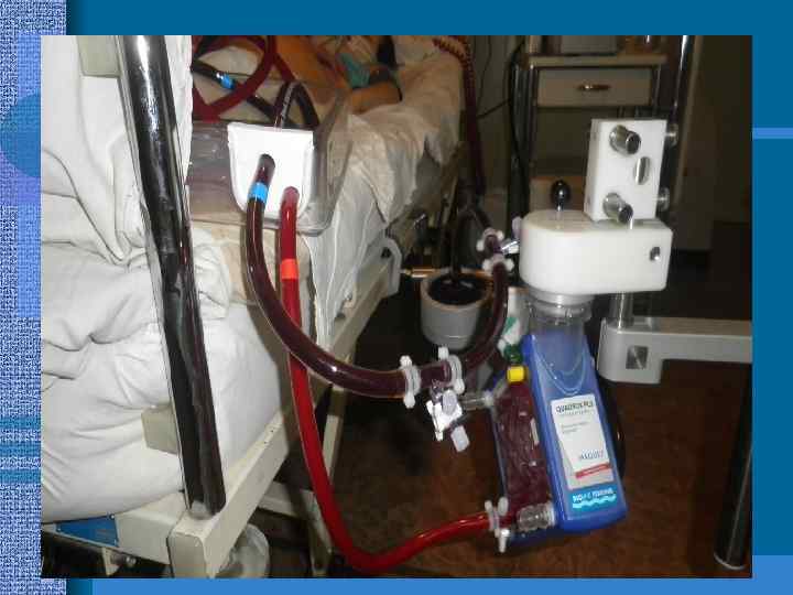Що робити, коли оксигенотерапія та ШВЛ не ефективні? Екстракорпоральна мембранна оксигенація крові • ЕКМО - метод тимчасової артеріалізації крові за допомогою мембранного оксигенатора; • Методика – Nova lung, Rota flow; • Тривалість – 14 -29 діб;