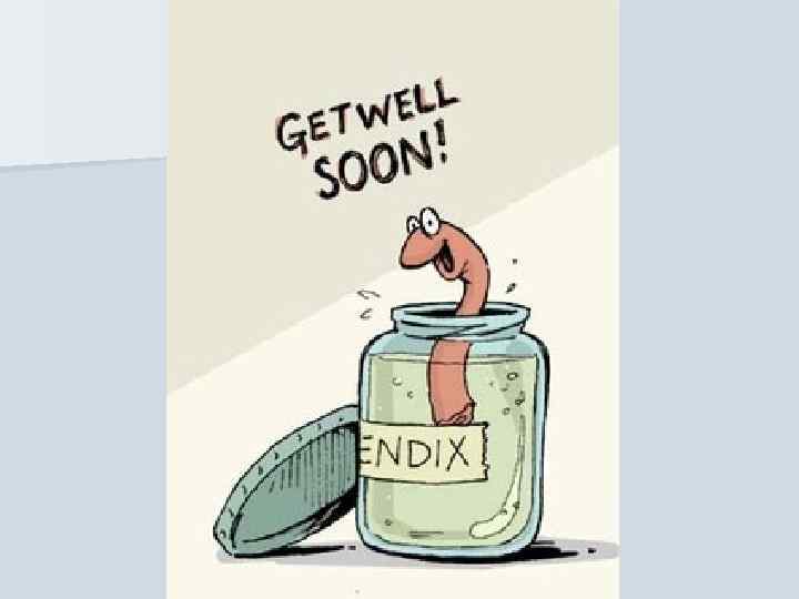 Об'єктивні ознаки захворювання n n n n Загальна слабкість Субфебрилітет Тахікардія Язик обкладений, вологий, при деструктивному процесі у відростку – сухий Живіт симетричний Черевна стінка відстає в акті дихання у правій здухвинній ділянці При поверхневій пальпації – напруження м'язів і болючість в правій здухвинній ділянці При глибокій пальпації – посилення болючості в правій здухвинній ділянці