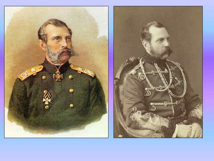 Александр II. Современники. q Я. И. Ростовцев – основной разработчик крестьянской реформы 1861 г. q Граф Д. А. Милютин – военный министр. q Граф Д. А. Толстой – министр народного просвещения. q Граф М. Т. Лорис-Меликов – министр внутренних дел. В январе 1881 г. М. Т. Лорис-Меликов подал императору Александру II записку с проектом, который вошел в историю как «конституция Лорис. Меликова» . Александр II собирался утвердить представленный ему документ, но был убит. q Граф М. Х. Рейтерн – министр финансов.
