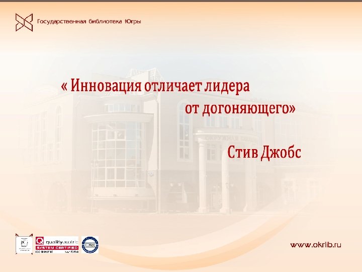 МЕНЕДЖМЕНТ КАЧЕСТВА КАК ИНСТРУМЕНТ СИСТЕМНЫХ ИЗМЕНЕНИЙ В БИБЛИОТЕКЕ Кривошеева Ольга Александровна, директор БУ «Государственная библиотека Югры»