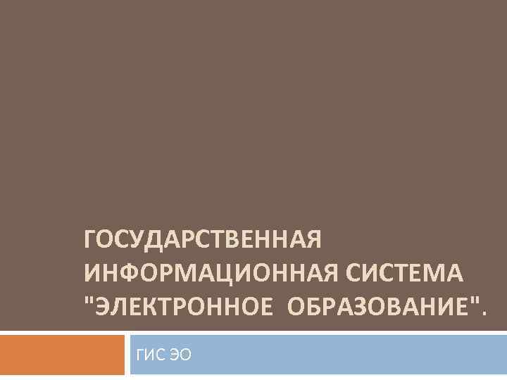 ГОСУДАРСТВЕННАЯ ИНФОРМАЦИОННАЯ СИСТЕМА "ЭЛЕКТРОННОЕ ОБРАЗОВАНИЕ". ГИС ЭО