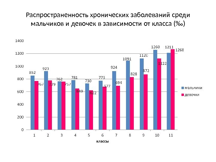 Распространенность хронических заболеваний среди мальчиков и девочек в зависимости от класса (‰)