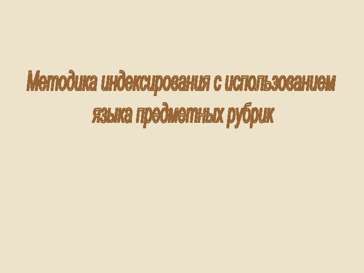 ПРЕДМЕТИЗАЦИЯ • Вид индексирования, при котором содержание документа выражается средствами языка предметных рубрик. • Определение предметной рубрики для произведения печати или другого документа в соответствии с его содержанием (ГОСТ 7. 76 -96). • Предметное индексирование средствами языка предметных рубрик (ГОСТ 7. 74 -96).