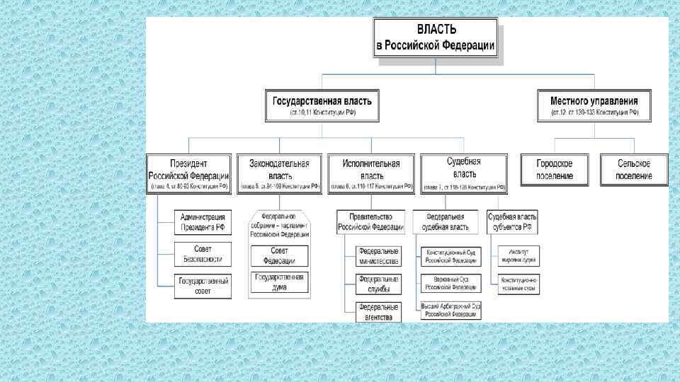 http: //www. constitution. ru/state/ дополнительную информацию можно посмотреть РФ является правовым государством: государством - разделение властей - права человека (глава 2 Конституции полностью посвящена правам человека и гражданина) - верховенство права – право выше власти, т. е. закону подчиняются все