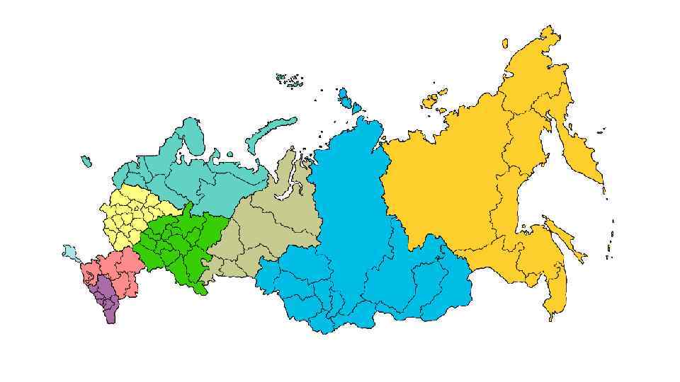 В настоящее время территория страны разделена на 8 федеральных округов: • • • Центральный федеральный округ (центр – г. Москва); Северо Западный федеральный округ (центр – г. Санкт Петербург); Южный федеральный округ (центр – Ростов на Дону); Северо Кавказский федеральный округ (центр – г. Пятигорск); Приволжский федеральный округ (центр – г. Нижний Новгород); Уральский федеральный округ (центр – Екатеринбург); Сибирский федеральный округ (центр – г. Новосибирск); Дальневосточный федеральный округ (центр – г. Хабаровск); Крымский федеральный округ (центр – г. Симферополь).