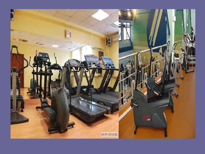 Тренажеры для фитнес клуба «Нева» : 1. Беговые дорожки – 6 штук. 2. Велотренажеры – 6 штук. 3. Силовые комплексы – 3 штуки. 4. Гимнастические комплексы – 3 штуки. 5. Гантели, гимнастические мячи, степы – зависит от количества посетителей. 6. Оборудование для сауны и бассейна. 7. Оборудование для массажных комнат. 8. Различные элементы мебели (диваны, столы, стулья). 9. Предметы интерьера.