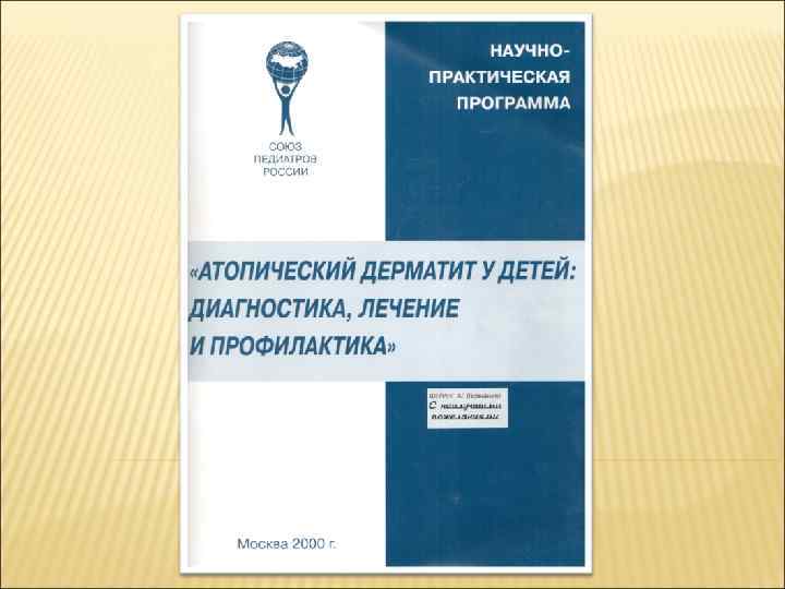 ГОСУДАРСТВЕННОЕ БЮДЖЕТНОЕ ОБРАЗОВАТЕЛЬНОЕ УЧРЕЖДЕНИЕ ВЫСШЕГО ПРОФЕССИОНАЛЬНОГО ОБРАЗОВАНИЯ «РОСТОВСКИЙ ГОСУДАРСТВЕННЫЙ МЕДИЦИНСКИЙ УНИВЕРСИТЕТ» МИНИСТЕРСТВА ЗДРАВООХРАНЕНИЯ РФ Кафедра детских болезней № 2 Атопический дерматит и крапивница у детей Заведующий кафедрой – доцент , д. м. н. Лебеденко А. А. Ассистент – к. м. н. Мальцев С. В. 2012 г.