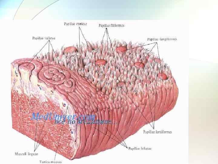 Слюнные железы. Слюна образуется сложными разветвленными альвеолярными или альвеолярно-трубчатыми слюнными железами: 3 пары крупных (работающие при стимуляции пищей циклически) и множество малых и мелких, располагающихся по всей поверхности слизистой рта - в области нижней поверхности языка (на кончике и корне), губ, щек (между мышечными пучками), твердого (немного) и мягкого (значительно больше) нёба. Мелкие и подъязычные железы функционируют постоянно, независимо от приема пищи, обеспечивая защитную, дыхательную, экскреторную, коммуникативную функции ЧЛО. NB! Все перечисленные железы являются аппаратами действия ФУС для формирования адекватного для проглатывания пищевого комка. Характер их секрета зависит от строения и типа концевых отделов – ацинусов и гландулоцитов.