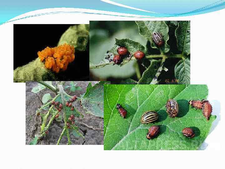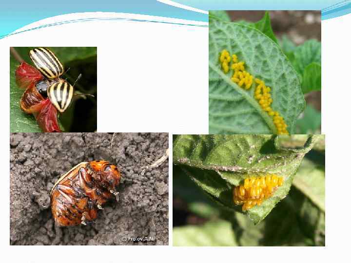 Фенология развития колорадского жука Месяцы декады V 1 VI 2 3 1 2 VII 3 1 VIII 2 3 1 IX 2 3 1 2 2009 * * + О л + О Л к + О Л К + К + о к + о л л л к к 2010 * * + о + О л + О Л к + О Л К + о + О К + + + + + 2011 * * * + + о + О л + О Л К + л л л 3 Примечания *- Имаго или взрослые насекомые в состоянии диапазы +-активное имаго о –яйцо л-личинка к-куколка + л