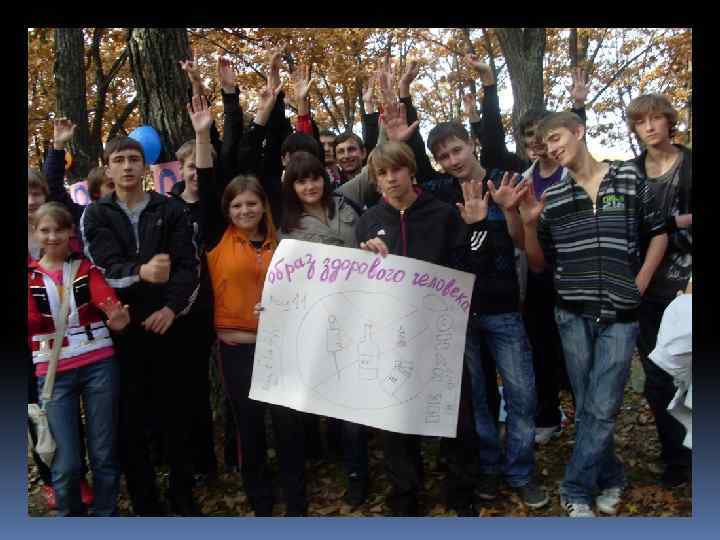 Цель – формирование здорового образа жизни. Задача: 1. Пропагандировать здоровый образ жизни среди сверстников. 2. Взять на себя ответственность за собственное здоровье и здоровье своих близких.