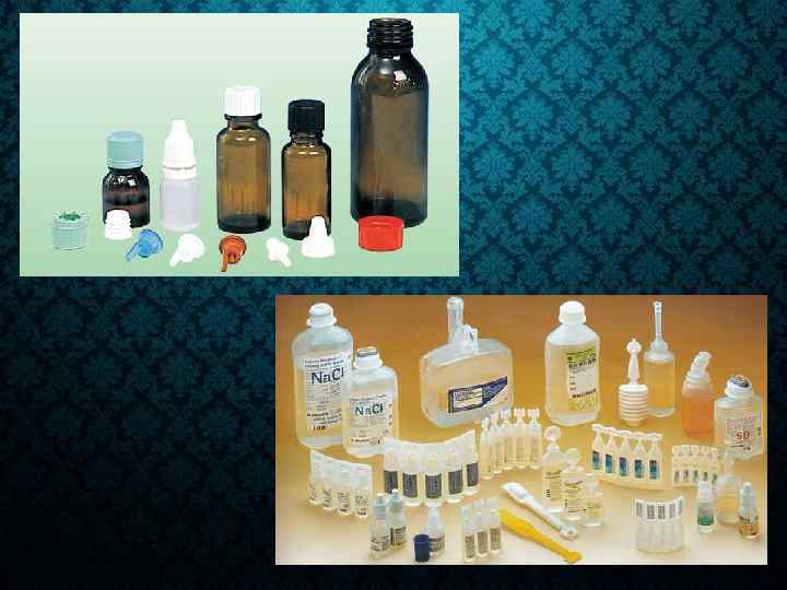 Отдельные виды упаковки лекарственных форм жидкие и вязкие лекарственные средства требуют применения упаковок, обеспечивающих отмеривание точной дозы. В основном, используется стеклянная тара, например: банки и флаконы из стекломассы с винтовой горловиной, банки и флаконы овальные с притертой пробкой, банки и флаконы из дрота и т. д. Для дозирования применяются упаковки, оснащенные средствами Дозирования (измерительные ложечки или мензурки-стаканчики для больших доз И капельницы для малых доз). Особое значение приобретает точность тюбики-капельницы из полиэтилена, в основном применяемые для дозирования при использовании сильнодействующих сердечных препаратов, капель глазных, для носа, ушей и т. д.