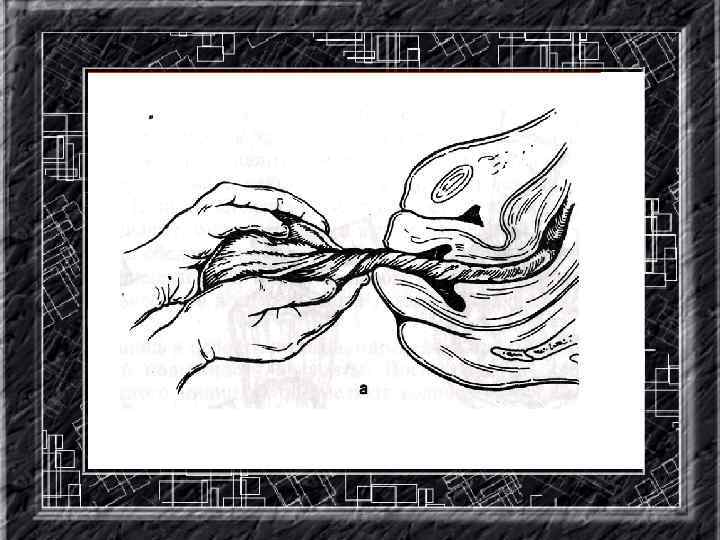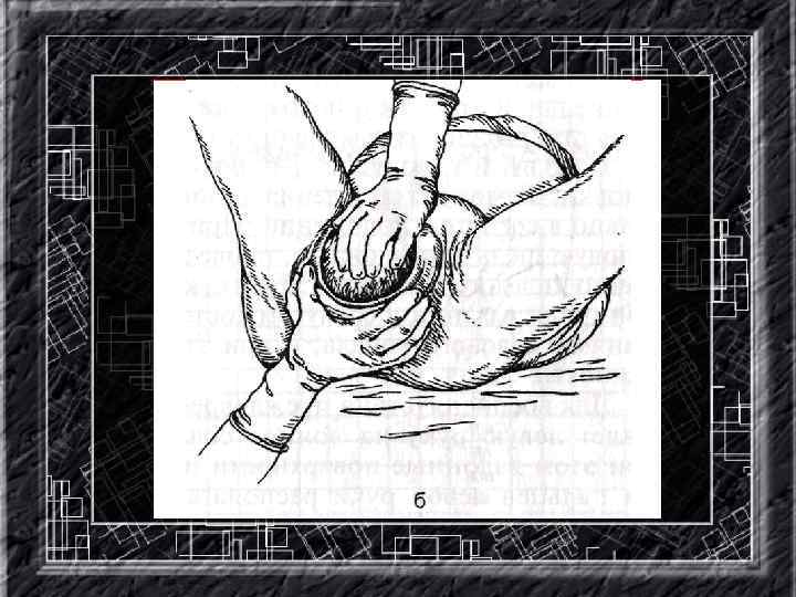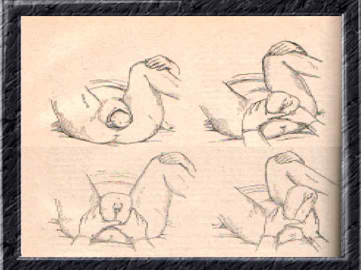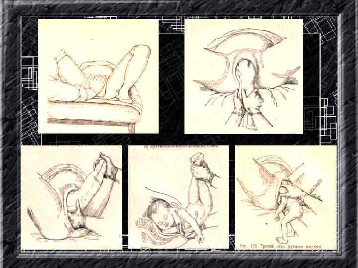 Названия слайдов: • • • • Слайд 110. Акушерское пособие: предупреждение преждевременного разгибания головки. Слайд 111. Акушерское пособие: «защита промежности» . Слайд 112. Акушерское пособие: выведение переднего плечика. Слайд 113. Акушерское пособие: выведение заднего плечика. Слайд 114. Определение признаков отделения последа. Слайд 115. Метод выделения оболочек. Слайд 116. Метод выделения оболочек (по Гентеру). Слайд 117. Осмотр последа. Слайд 118. Метод наружного выделения последа (Абуладзе). Слайд 119. Метод наружного выделения аоследа (Креде-Лазаревича). Слайд 120. Запущенное поперечное положение плода. Слайд 121. Тазорвое предлежание. Слайд 122. Пособие по Цовьянову I при чисто-ягодичном предлежании. Слайд 123. Пособие по Цовьянову II, классическое акушерское пособие при ножных тазовых предележаниях. Слайд ы 124 – 133. Названия слайдов.