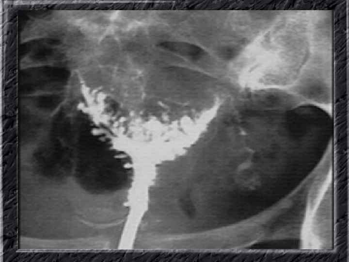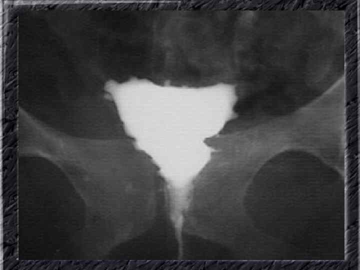 Названия слайдов: • • • Слайд 1. Титульный лист. Слайд 2. Лапароскопия: вид неизмененной матки. Слайд 3. Гистеросальпингография: тень полости неизмененной матки при ее заполнении рентгеноконтрастным веществом Слайд 4. Ультрасонография: вид эндометрия в разные фазы менструального цикла. Слайд 5. Матка: два отдельных тела имеют общую шейку; макропрепатат. Слайд 6. Гистерография: разделение тени полости матки выемкой, расположенной в области дна. Слайд 7. Лапароскопия: удвоение матки. Слайд 8. Ультрасонография: удвоение матки. Слайд 9. Гистерография: четкие неровные контуры дефектов наполнения полости матки при синехиях. Слайд 10. Эндометриальная гиперплазия: полость матки выстлана пышным, подобным пальмовым листьям гиперпластическим эндометрием; макропрепарат.