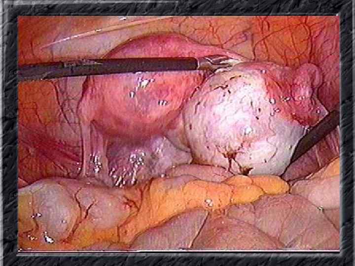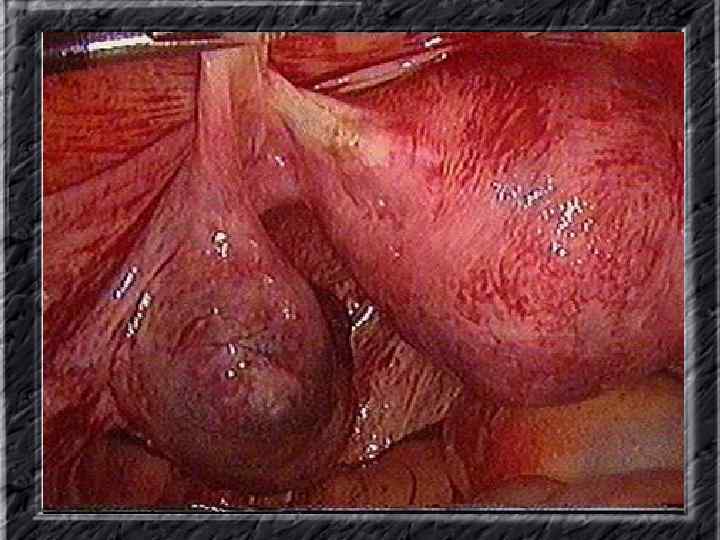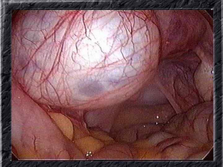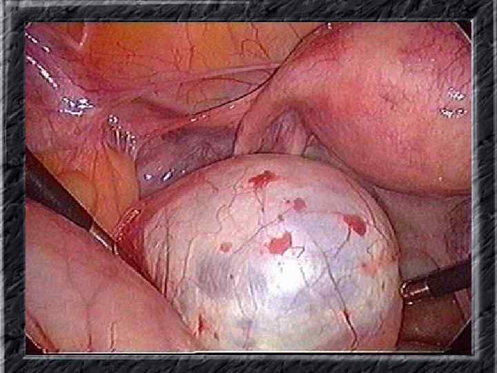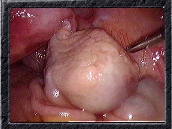 Названия слайдов: • • • Слайд 41. Лапароскопия: эндометриоидная киста яичника. Слайд 42. Лапароскопия: эндометриоидные гетеротопии на поверхности эндометриоидной кисты яичника. Слайд 43. Ультрасонография: поликистозное изменение яичника. Слайд 44. Серозная цистаденома яичника: внешний вид; макропрепарат. Слайд 45. Лапароскопия: цистаденома яичника. Слайд 46. Ультрасонография: папиллярная цистоаденома яичника, содержащая внутри папиллярные разрастания. Слайд 47. Ультраснография: многокамерная киста яичника (муцинозная цистаденома). Слайд 48. Лапароскопия: папиллярная цистаденома. Слайд 49. Ультрасонография: многокамерное жидкостное образование яичника, содержащее полиморфный солидный конгломерат — рак из муцинозной цистаденомы. Слайд 50. Рентгеноконтрастная сальпингография: нормальное наполнение и проходимость обеих маточных труб.