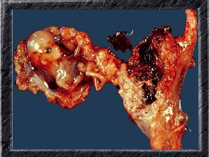 Названия слайдов: • • • Слайд 51. Ультрасонография: интерстициальный и истмический отделы маточной трубы. Слайд 52. Лапароскопия: неизмененная правая маточная труба. Слайд 53. Ультрасонография: многокамерная форма сальпингита. Слайд 54. Лапароскопия: относительно равномерное утолщение маточной трубы при гидросальпинксе. Слайд 55. Лапароскопия: вид маточной трубы при гидросальпинксе. Слайд 56. Гистеросальпингография: неравномерное расширение и деформация маточных труб. Слайд 57. Прервавшаяся трубная беременность: плод; макропрепарат. Слайд 58. Гематосальпингс, развившийся вследствие внутреннего разрыва плодо-вместилища при трубной беременности; макропрепарат. Слайд 59. Лапароскопия: значительное увеличение участка маточной трубы при трубной беременности. Слайд 60. Лапароскопия: скопление крови в полости малого таза в результате трубного аборта.
