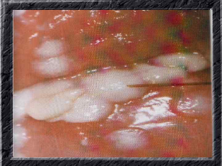 Названия слайдов: • • • • Слайд 61. Лапароскопия: множественные спайки в полости малого таза женщины. Слайд 62. Лапароскопия: признаки спаечной болезни в полости малого таза женщины. Слайд 63. Лапароскопия: деформация маточной трубы при спаечном процессе в полости малого таза. Слайд 64. Ультрасонография: спаечный процесс в малом тазу. Слайд 65. Ультрасонография: мультифолликулярные яичники. Слайд 66. Ультрасонография: кистома яичника. Слайд 67. Ультрасонография: патолоргия эндометрия. Слайд 68. Ультрасонография: внематочная беременность. Слайд 69. Ультрасонография: внематочная беременность. Слайд 70. Кольпоскопия: кандлилома – папиллома. Слайд 71. Кольпоскопия: кандлидозные бели. Слайд 72. Кольпоскопия: полип шейки матки. Слайд 73. Кольпоскопия: эрозия шейки матки. Слайд 74. Кольпоскопия: экспульсия ВМС.