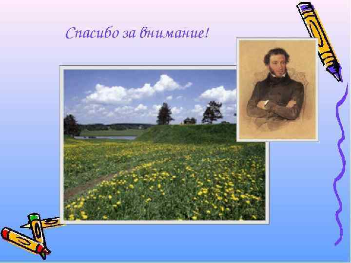 Село Тригорское Утром и днём Пушкин обычно работал, потом уезжал верхом или уходил в село Тригорское, где жили соседи, с которыми он был хорошо знаком. А вечерами, когда за окном выла вьюга, он снова, как в детстве, слушал нянины сказки и песни. Вот как поэт писал брату в письме: «Знаешь ли мои занятия? До обеда пишу записки, после обеда езжу верхом, вечером слушаю сказки… Что за прелесть эти сказки! Каждая из них поэма!»
