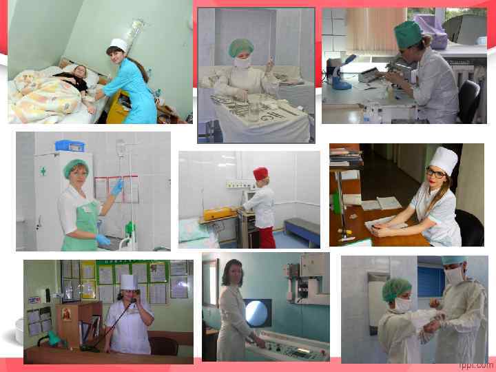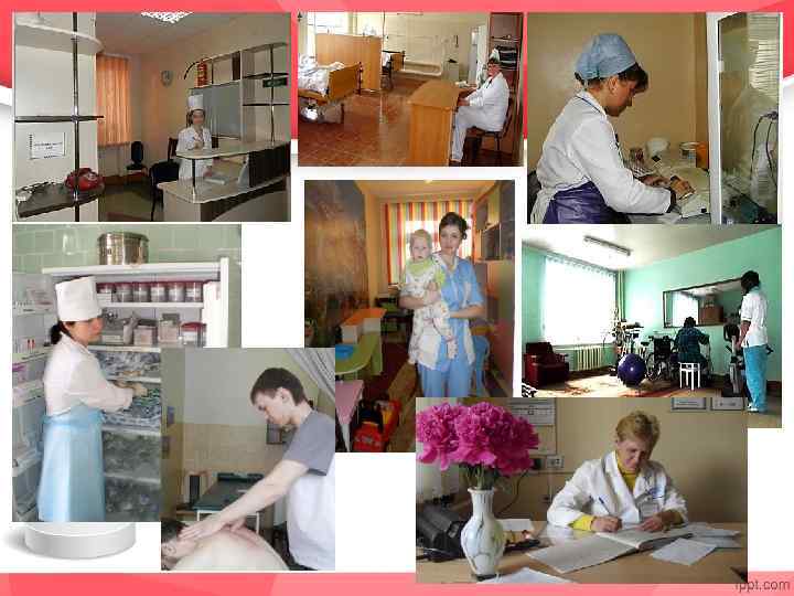 ЦЕНТРАЛЬНАЯ ГОРОДСКАЯ БОЛЬНИЦА Средний медицинский персонал работает: -медицинскими сестрами палатными -медицинскими сестрами перевязочными -медицинскими сестрами процедурного кабинета -медицинскими статистиками -фельдшерами лаборантами -рентгенолаборантами (после переподготовки) -медицинскими сестрами по физиотерапии (после переподготовки) -акушеркой