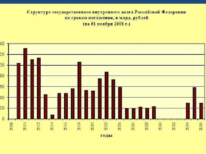 Государственный внутренний долг Российской Федерации, l Выражен в государственных ценных бумагах l Постоянно возрастает, что отражает уровень развития внутреннего финансового рынка l Выражен в бумагах различных сроков