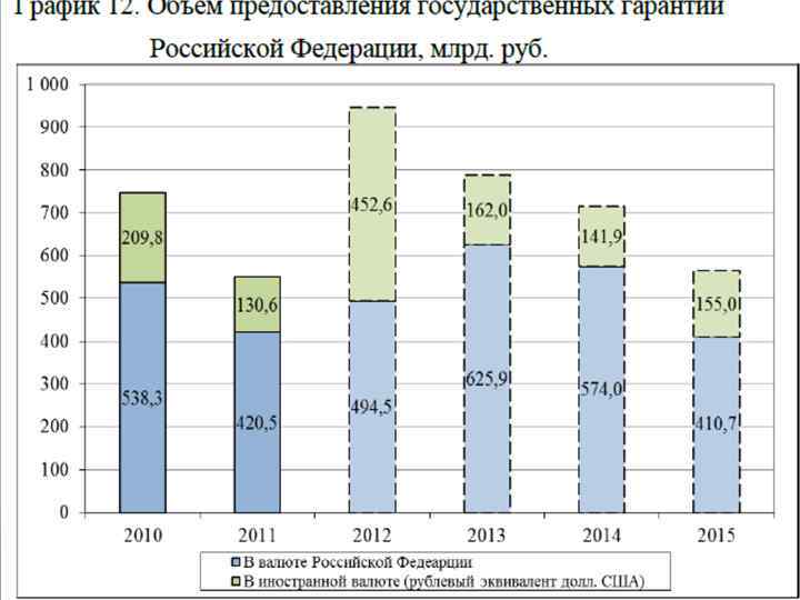 Динамика государственного внутреннего долга по состоянию на 01. 2013 Объем государственного внутреннего долга Российской Федерации всего, в том числе: 01. 02. 2013 4 977, 898 01. 03. 2013 4 899, 157 4 841, 925 государственные гарантии Российской Федерации в валюте Российской Федерации 906, 638 902, 662