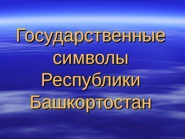 Государственные символы Республики Башкортостан (в ред. Закона РБ от 12. 02. 2003 № 466 -з) Республика Башкортостан имеет свои Государственный герб, Государственный флаг и Государственный гимн — официальные символы, выражающие государственность Республики Башкортостан, самобытность и традиции народа Башкортостана.