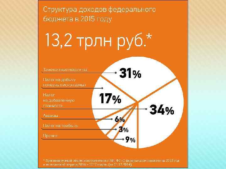 Федеральный бюджет РФ Право Российской Федерации на самостоятельный федеральный бюджет закреплено в Конституции Российской Федерации (ст. 71), а Бюджетный кодекс Российской Федерации детально регламентирует порядок его формирования и исполнения. 28 % всех поступлений дает Ханты-Мансийский автономный округ, 16 % - Москва, 10 % - Ямало. Ненецкий автономный округ, 5 % - Санкт-Петербург, таким образом, четыре субъекта Российской Федерации дают до 60 % всех поступлений налогов в федеральный бюджет.