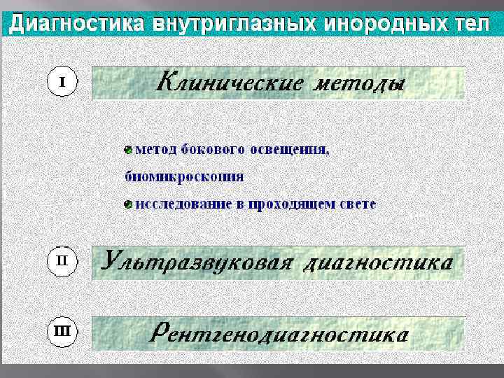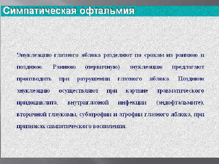 Классификация глазной травмы: - По поражающему фактору: пулевые; Осколочные; Холодное оружие; Тупые предметы; Ударная волна; Пламя; Химические вещества; Прочие; Комбинации факторов.