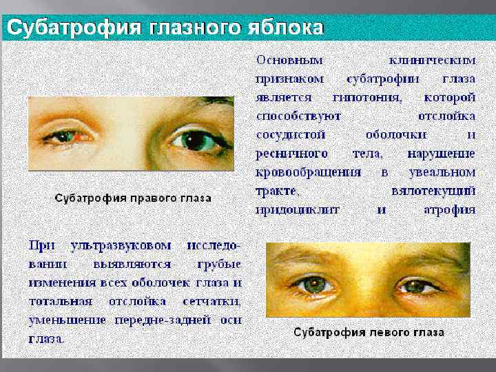 Классификация глазной травмы: - - - По степени тяжести: Легкой степени: снижение зрения до 0, 5. Средней степени тяжести: снижение зрения до 0, 2, изменения со стороны внутренних оболочек и содержимого глазного яблока. Тяжелые: острота зрения меньше 0, 2, выраженные поражения внутренних оболочек и содержимого глазного яблока. Крайне тяжелые: разрушения глазного яблока, сочетанные травмы.