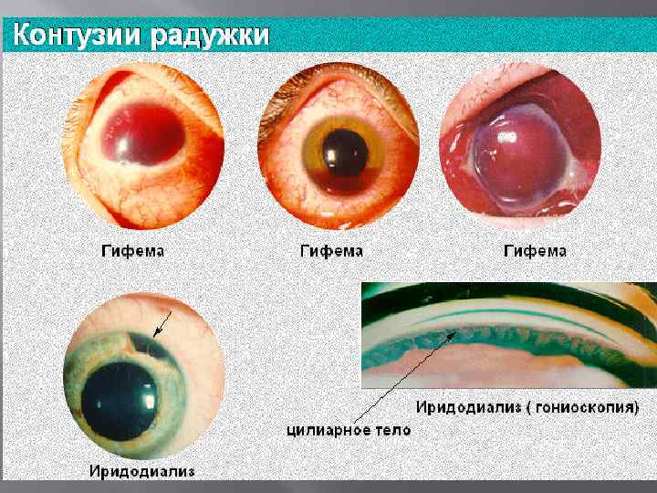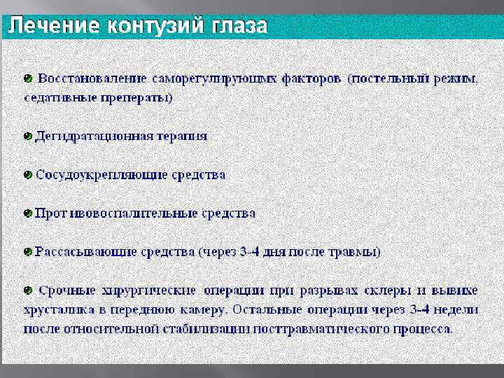 Травмы глазницы: Контузии; Открытые повреждения мягких тканей; Переломы костных стенок; Инородные тела орбиты.