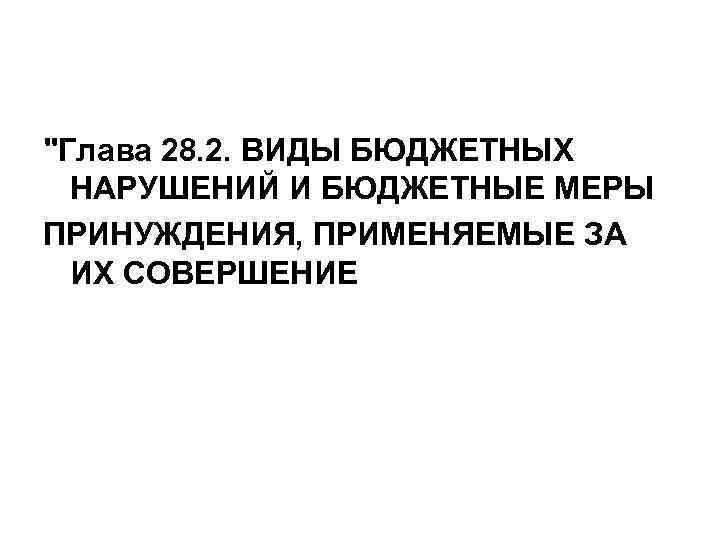 "Глава 28. 2. ВИДЫ БЮДЖЕТНЫХ НАРУШЕНИЙ И БЮДЖЕТНЫЕ МЕРЫ ПРИНУЖДЕНИЯ, ПРИМЕНЯЕМЫЕ ЗА ИХ СОВЕРШЕНИЕ